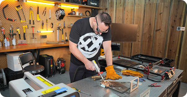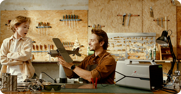 Safety is built into every detail of the X1 Pro.It features multiple protection mechanisms — safety clip, safety key, emergency stopbutton, and external e-stop — all designed to prevent accidental activation.Each unit also includes protective laser goggles to ensure user safety during operation.